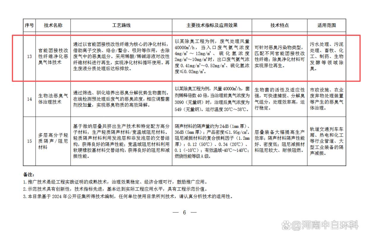 官能团接枝改性纤维净化恶臭气体技术(所属企业河南中白环境科技有限公司),入选